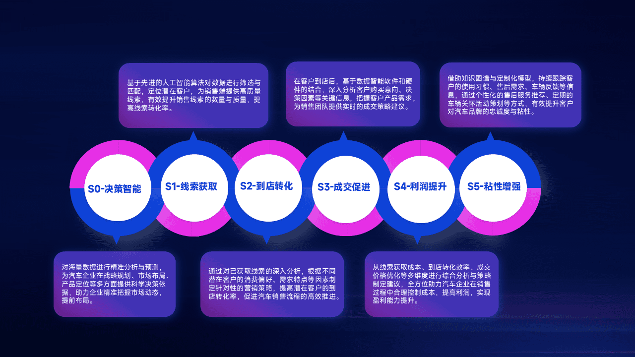 通过拓宽潜在客户来源、、优化线索分配并提高到店转化率,,,,以增强销售效率。。。。同时,,利用线索数据不断优化分析模型,,,,有效提升转化率,,,扩大营销影响力。。